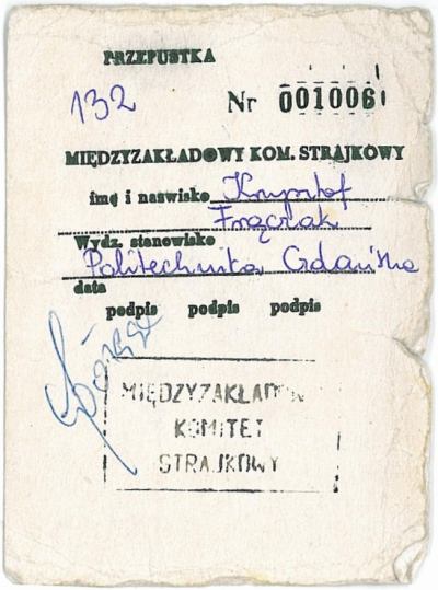 Przepustka strajkowa do Stoczni Gdańskiej z sierpnia 1980 r.