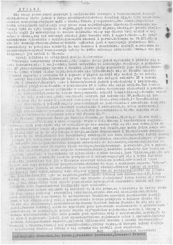 Pragniemy także przeprosić i podziękować Tym wszystkim cichym bohaterom podziemia z którymi współpracowaliśmy, których nie wymieniliśmy – i tych którzy może mają poczucie że ich zawiedliśmy.