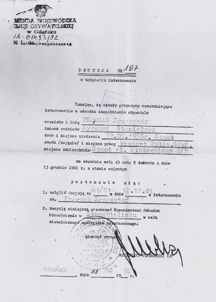 Decyzja o internowaniu 13 XII 1981 r.