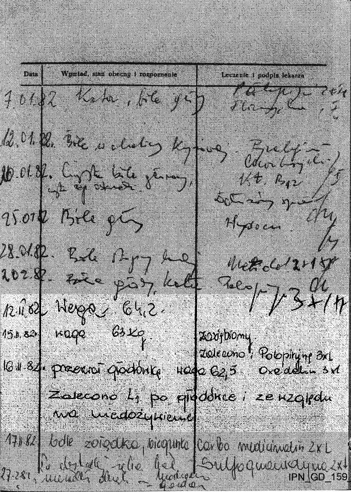 Więzienna karta ambulatoryjnego leczenia z okresu internowania