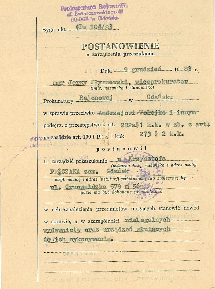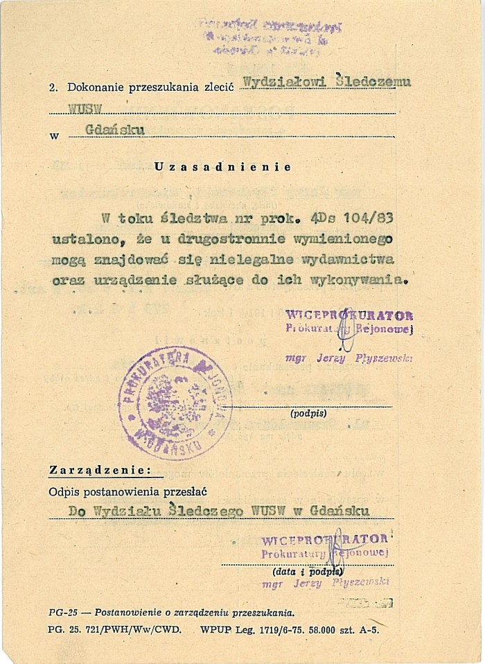 Prokuratorskie nakazy rewizji z roku 1983 i 1984 r.